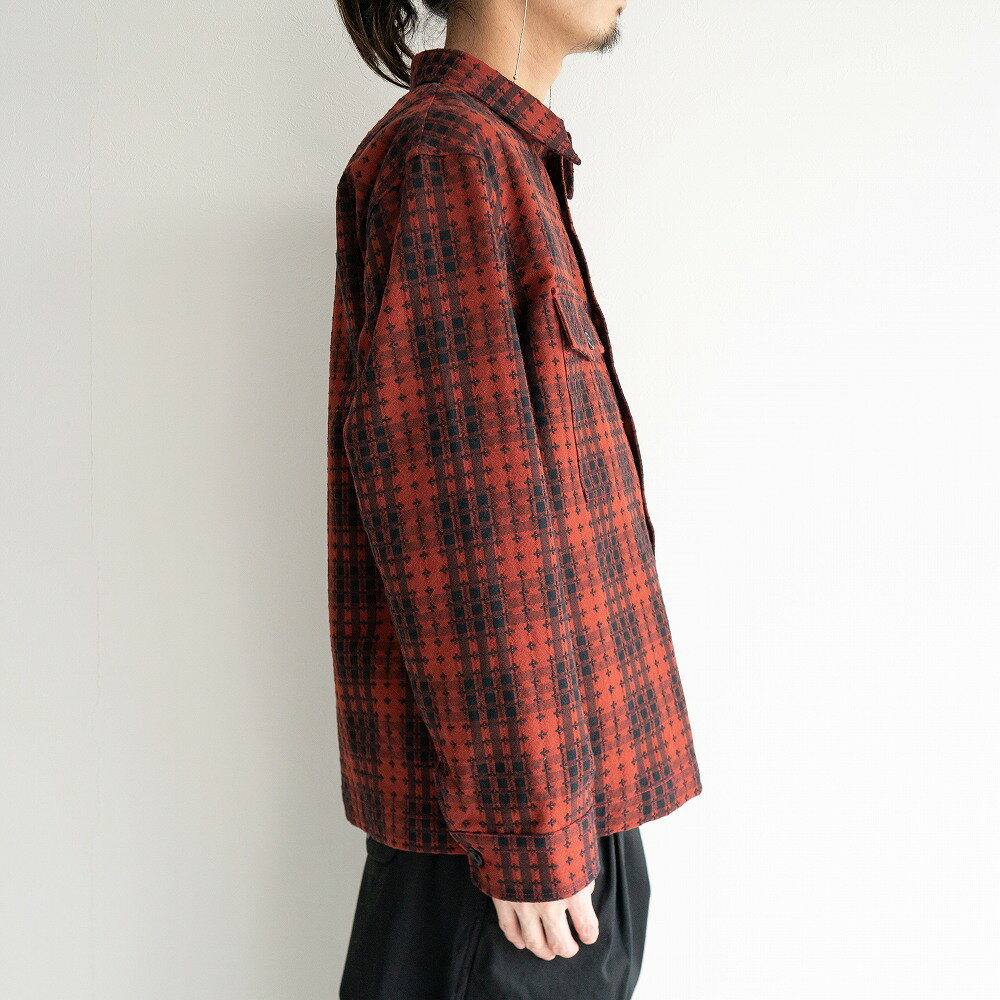 その他商品説明 刺し子織生地のシャツジャケット ライトアウターのポジションで、秋口の肌寒い季節から真冬のインナーまで長く着まわしていただけるアイテム。